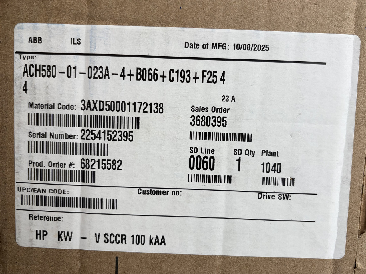 - MPN: ACH580-01-023A-4+B066+C193+F254