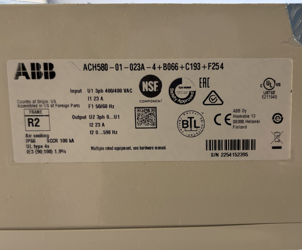 - Model: ACH580-01-023A-4+B066+C193+F254