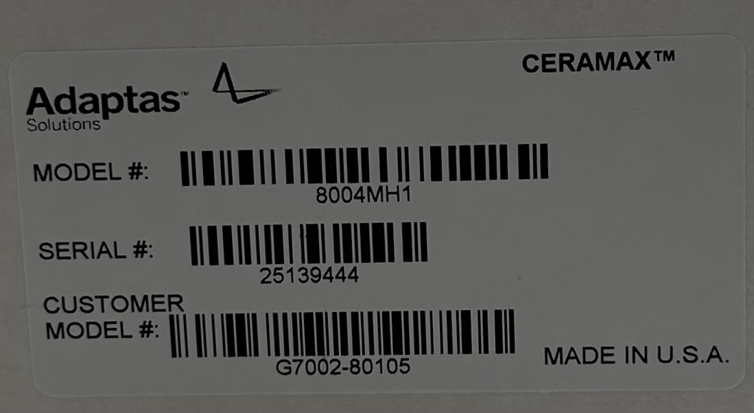 Adaptas Solutions - CeraMax 8004MH1 G7002-80105 This item is internally sealed in box as shown.