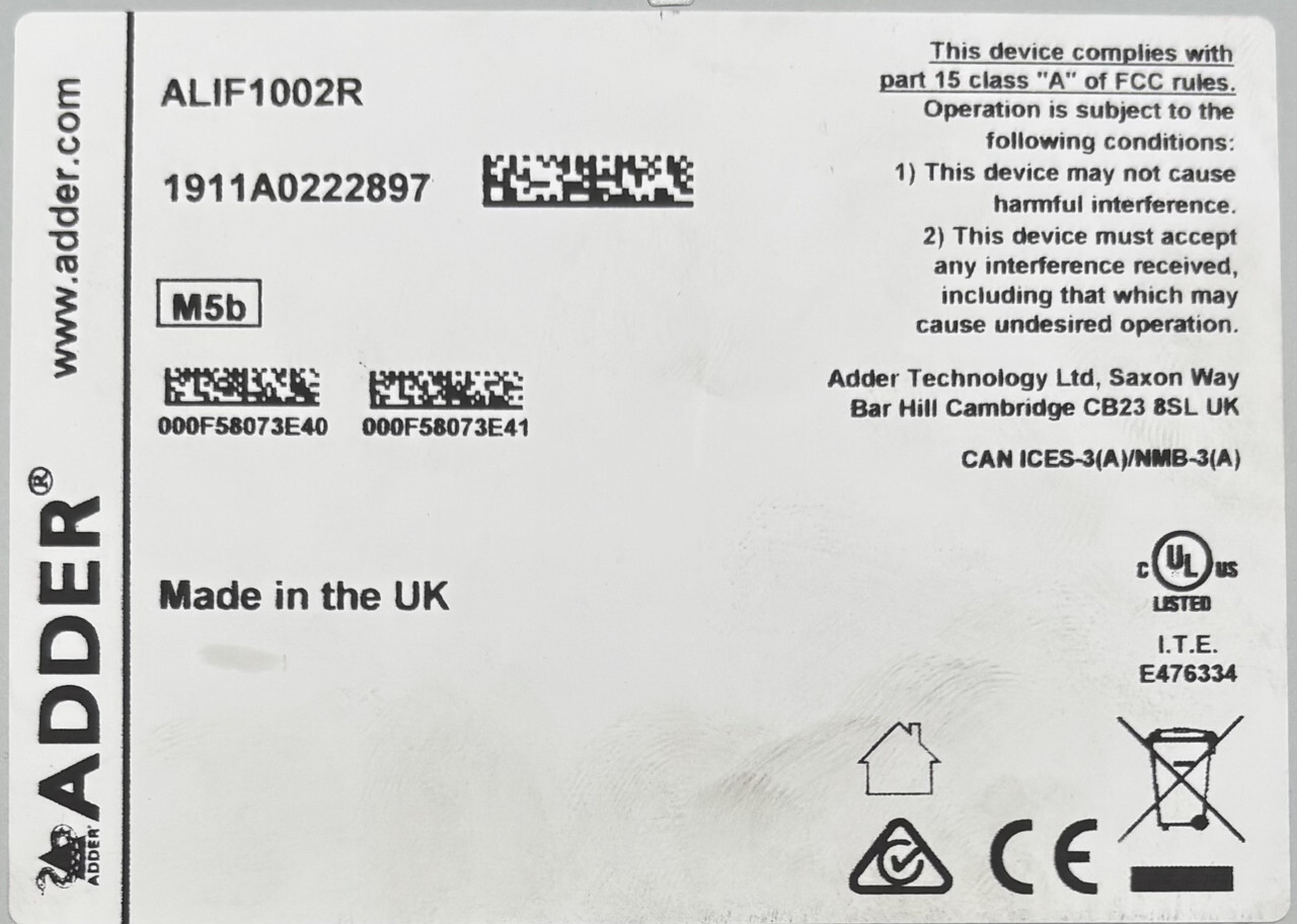Adder Alif1002r Infinity 1002 Digital Kvm Extender Network Dvi Ip Usb Receiver This item is used and comes without cables or accessories as shown.