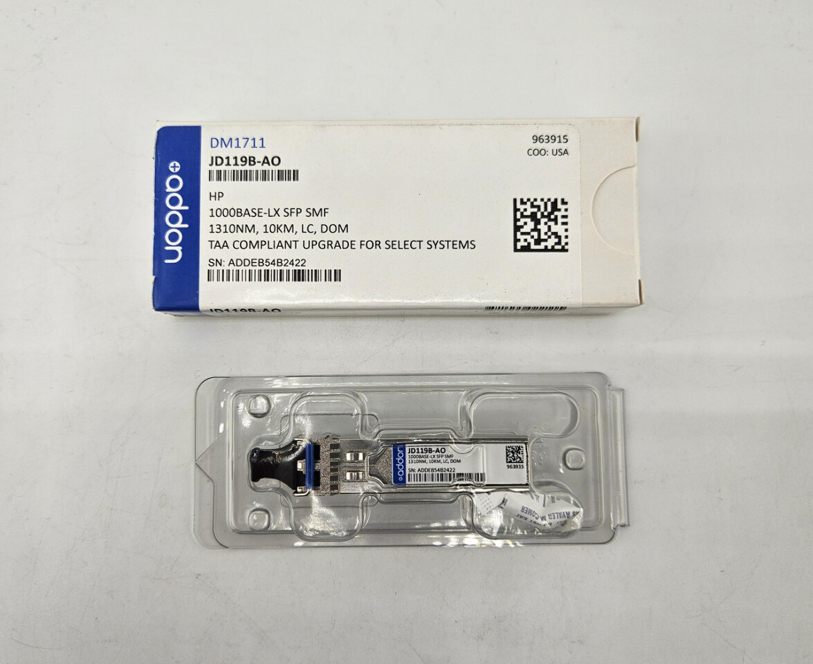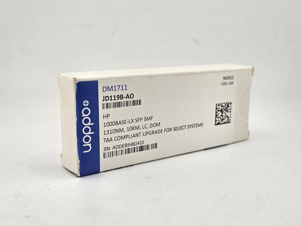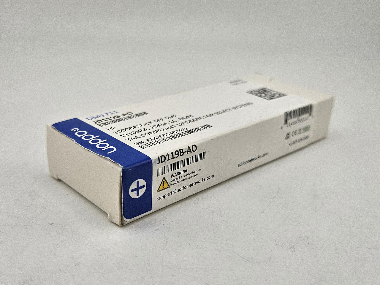 ADDON HP JD119B-AO 1000Base-LX SFP Compatible SMF, 1310NM,10KM, LC, DOM XCVR This item is new in an open box as shown.