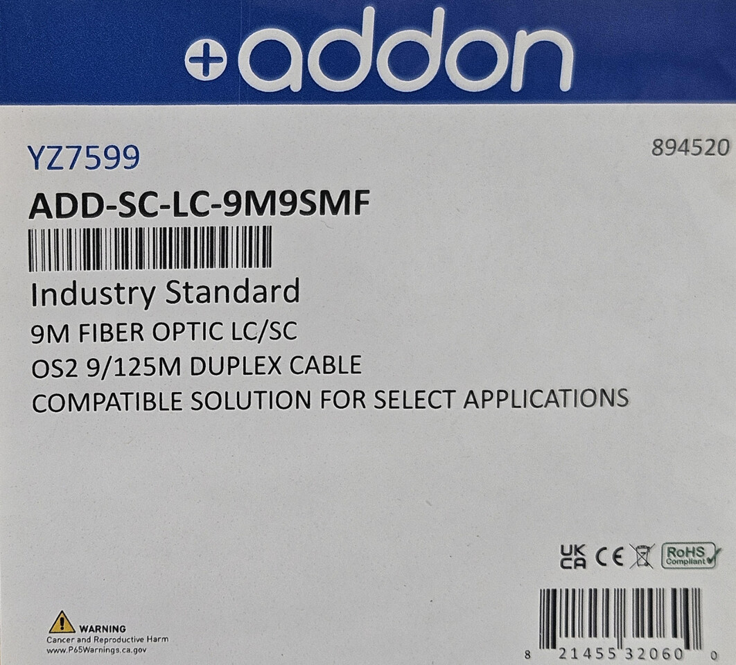 AddOn Networks ADD-SC-LC-9M9SMF 9M Fiber LC/SC Optic OS2 9/125M Duplex Cable This item is new as shown.
