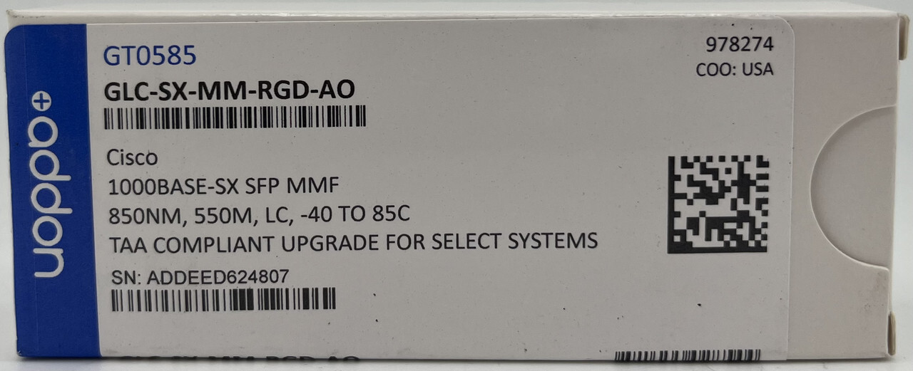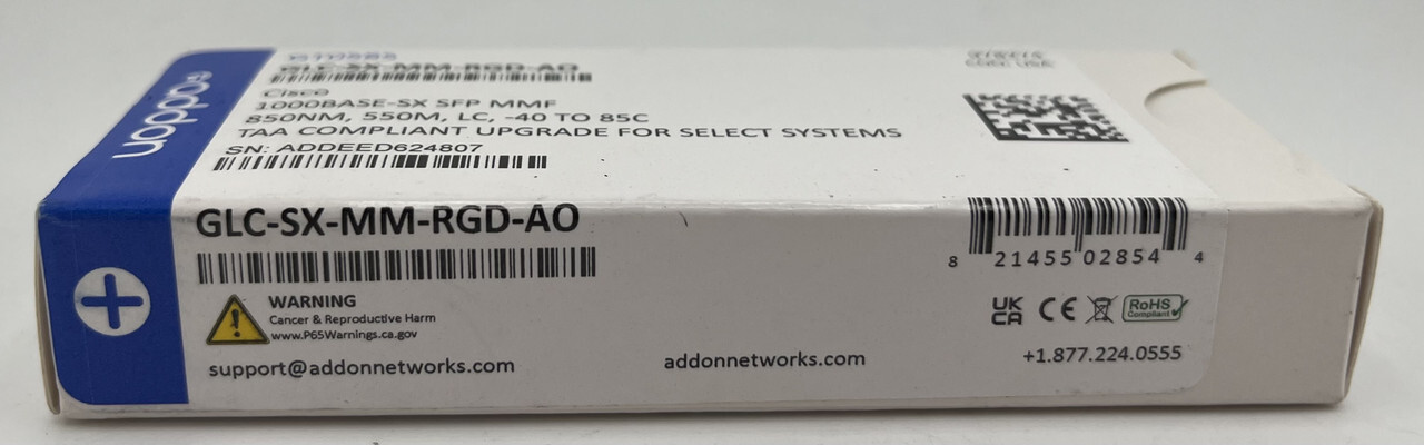 ADDON NETWORKS GLC-SX-MM-RGD-AO 850NM 550M LC TRANSCEIVER MODULES This item is new as shown.