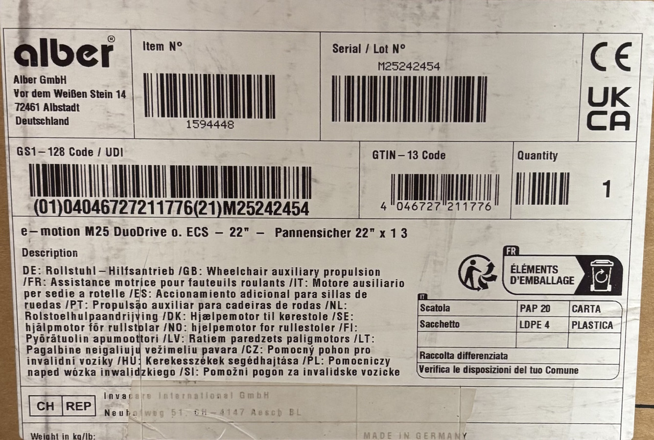 Alber E-Motion M25 DuoDrive Power Assist Wheels For Wheelchair These items are new as shown.