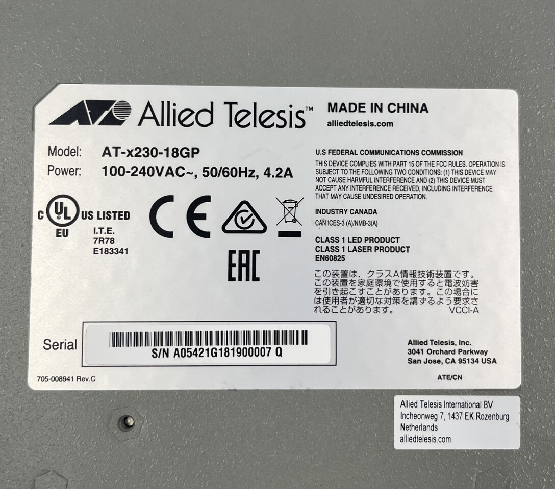 - Model: AT-x230-18GP