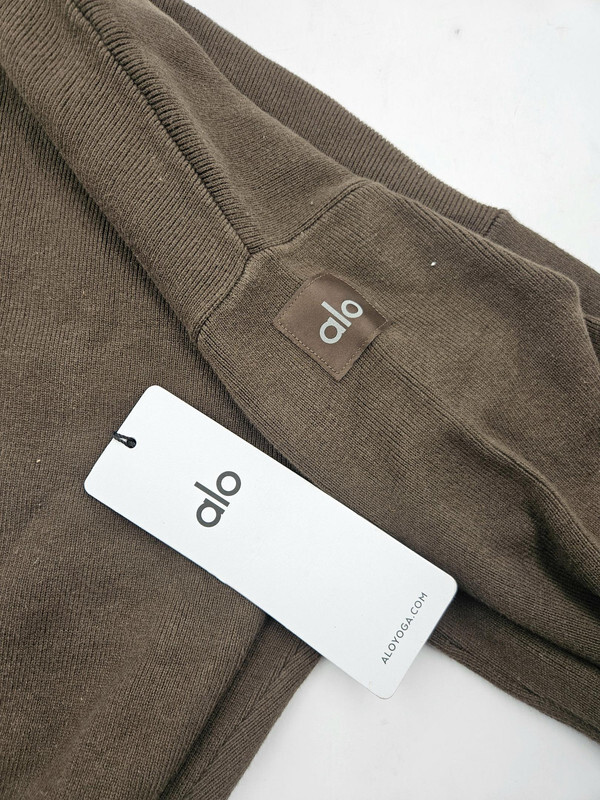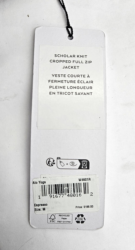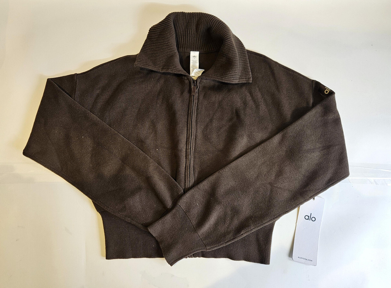ALO YOGA 4601R Scholar Knit Cropped Full Zip Jacket M Espresso This item is new as shown.