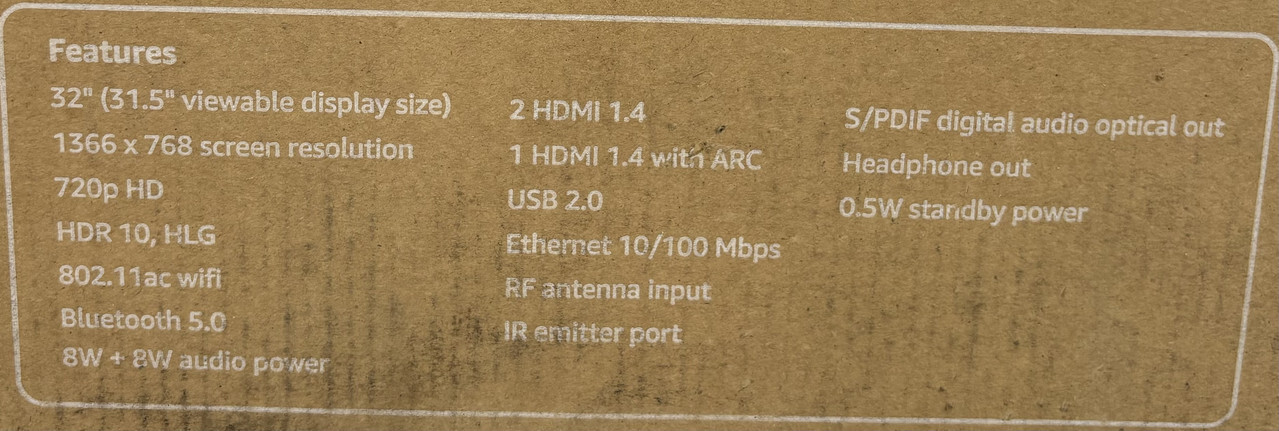 Amazon firetv 2-Series 32" HD TV 720p Smart TV 1366x768 Resolution This item is new and sealed in the original box as shown.