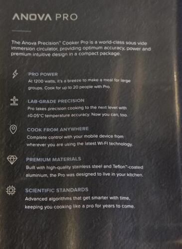 Anova Precision Cooker Pro 1200W Electric Sous Vide Wi-Fi & Bluetooth Compatible This item is new sealed in orginal packaging as shown