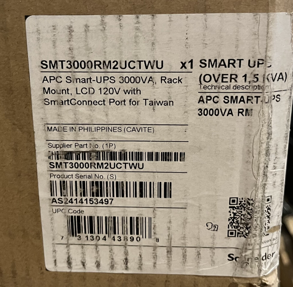 Apc SMT3000RM2UCTWU Rackmount 2u 120v Line Interactive 3kva Smart-ups This item is new as shown.