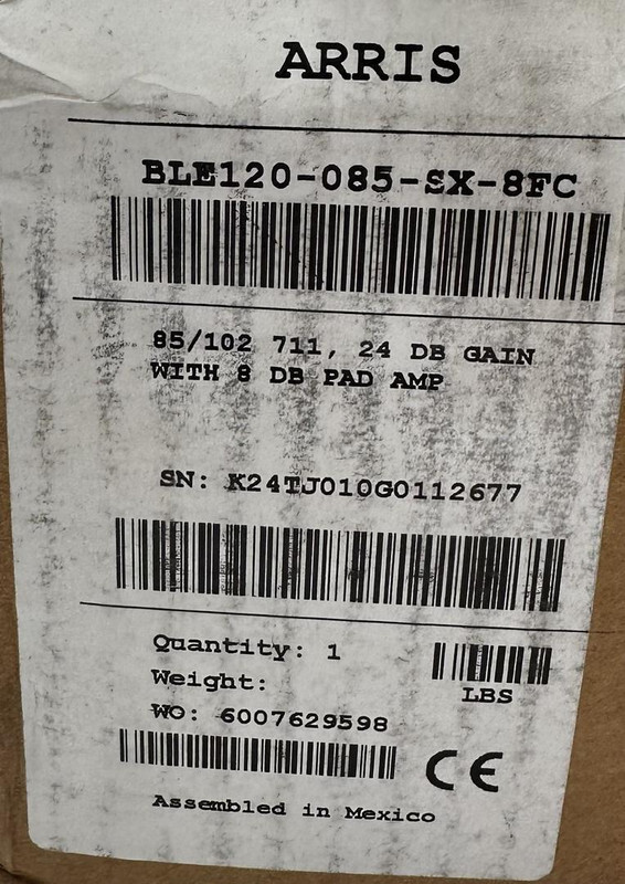 Arris Ble120-085-sx-8fc Quad Full Station 1.2ghz Line Extender This item is brand new in an opened box as shown.