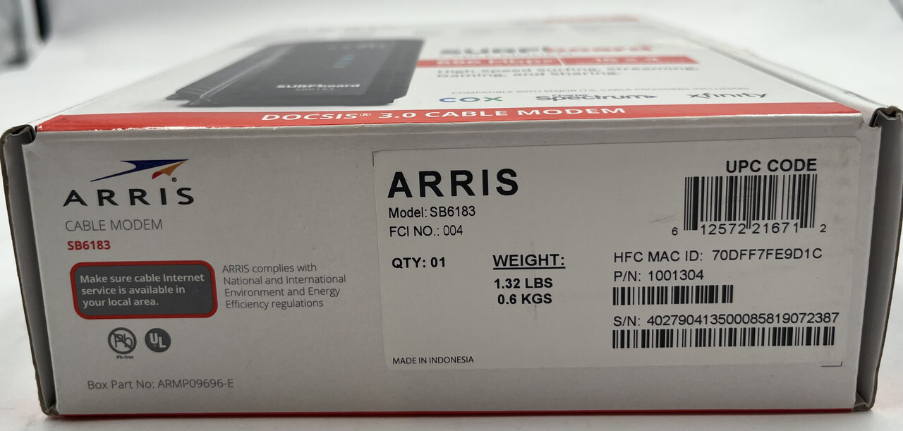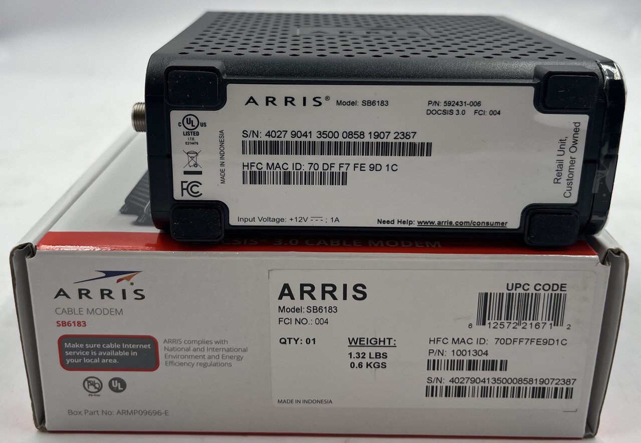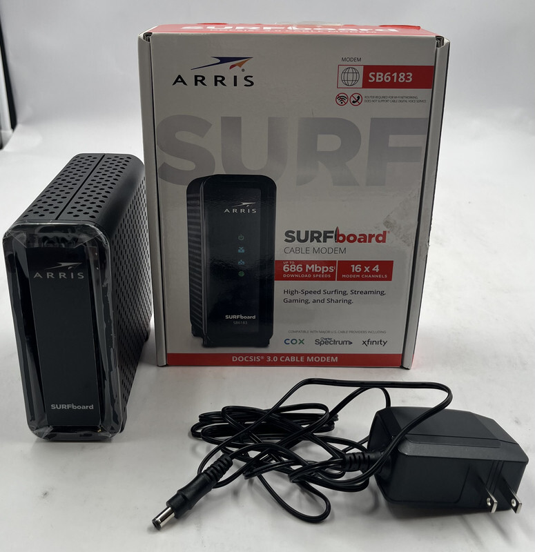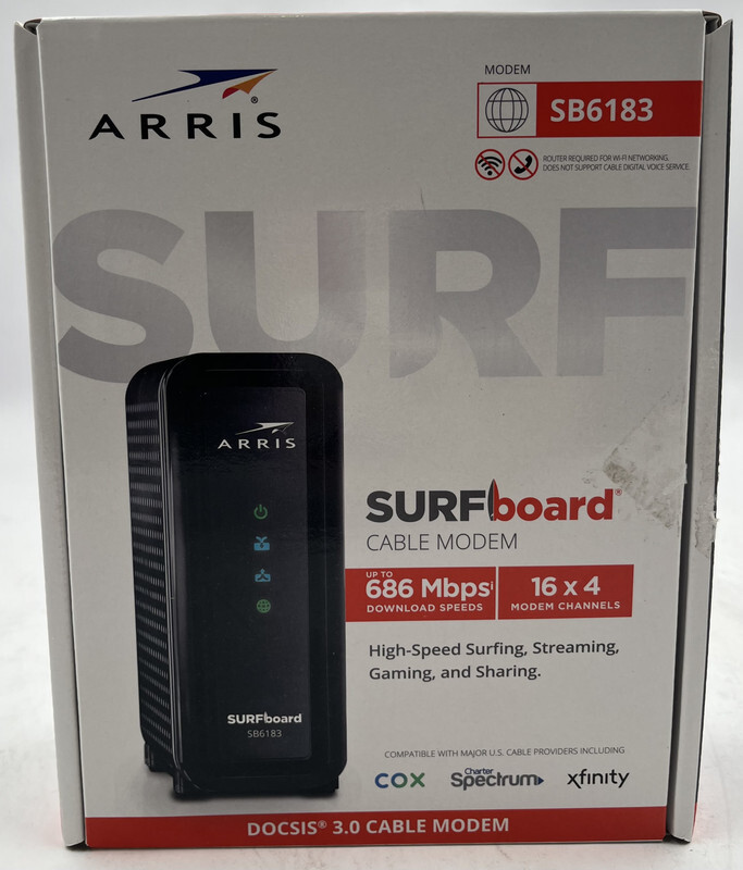 Arris SURFboard SB6183 1001304 DOCSIS 3.0 MODEM/BLACK This item is new in slightly freight worn box as shown.