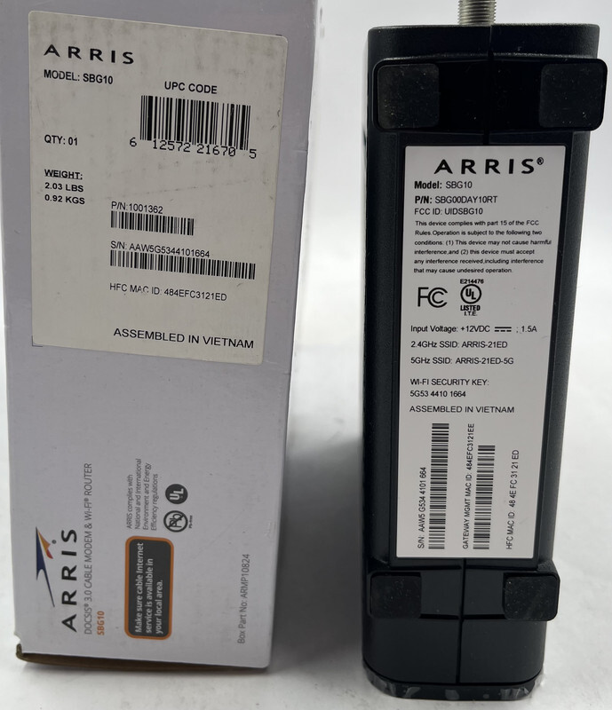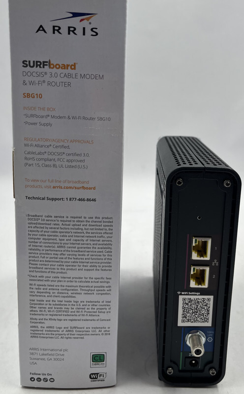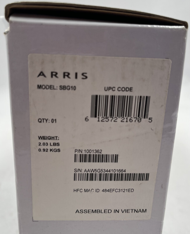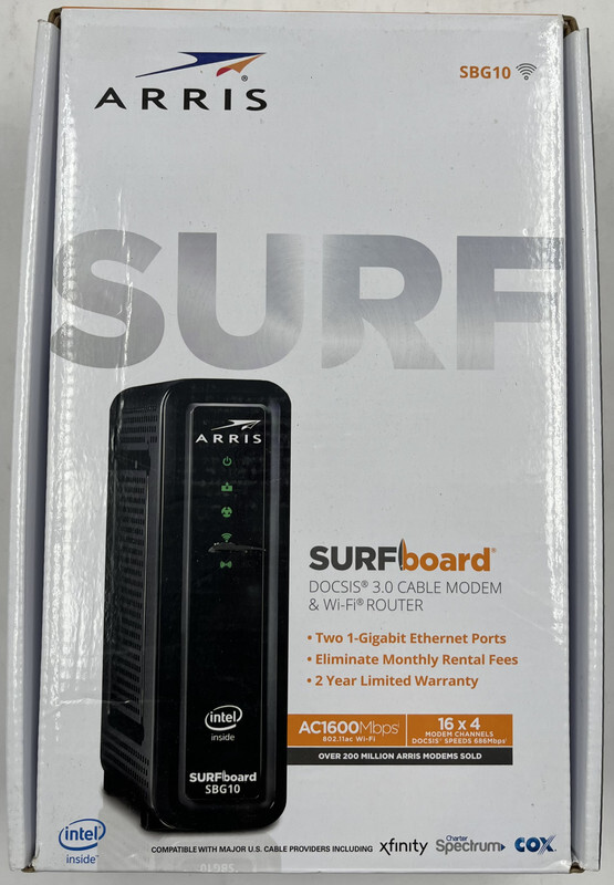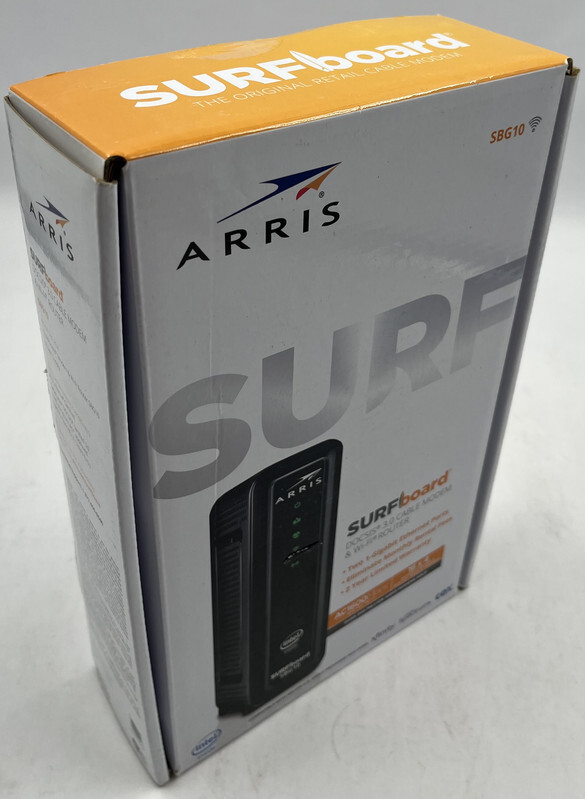 Arris SURFboard SBG10 1001362 DOCSIS 3.0 AC1600 Wi-Fi 5 MODEM/BLACK This item is new in slightly freight worn box as shown.