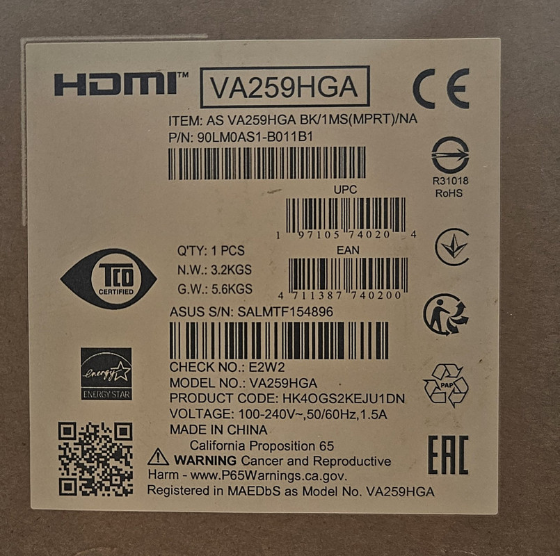 ASUS VA259HGA 24.5" Full HD 1080p IPS Gaming Monitor 120Hz/1ms Black This item is new as shown.