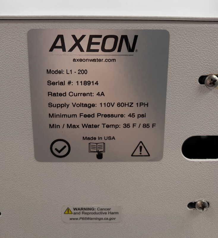 AXEON L1-200 REVERSE OSMOSIS SYSTEM 200 GPD 110V 60HZ 1PH This item is new as shown.