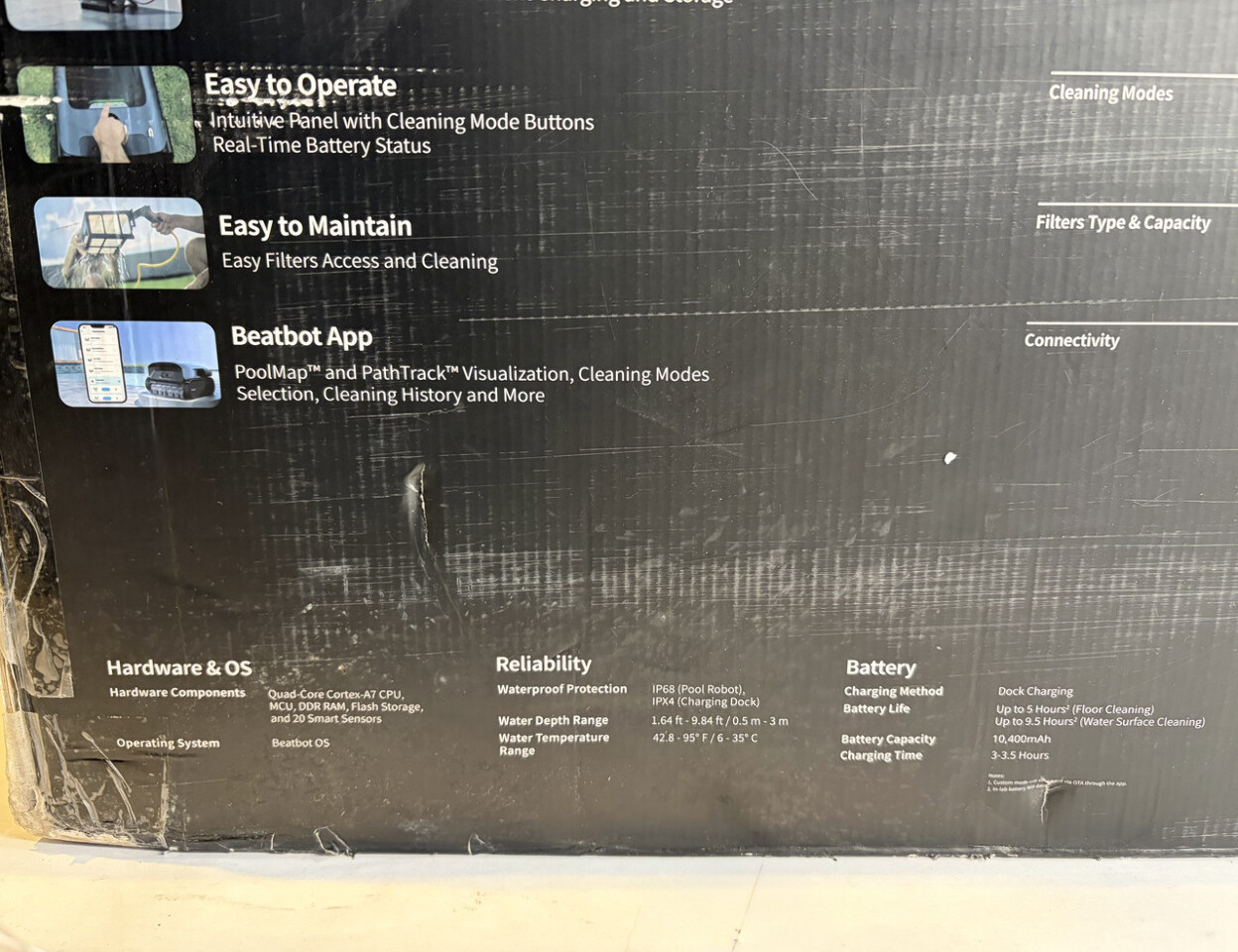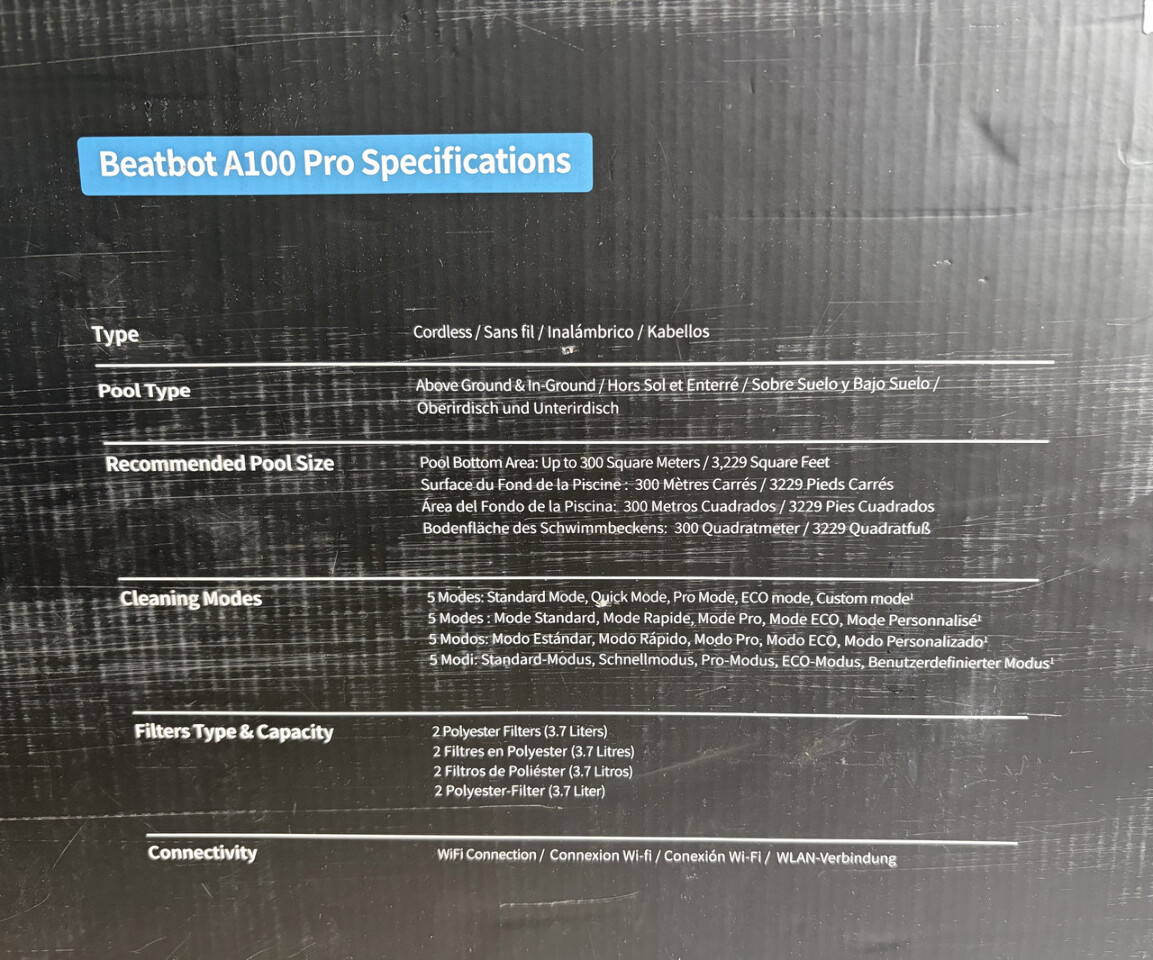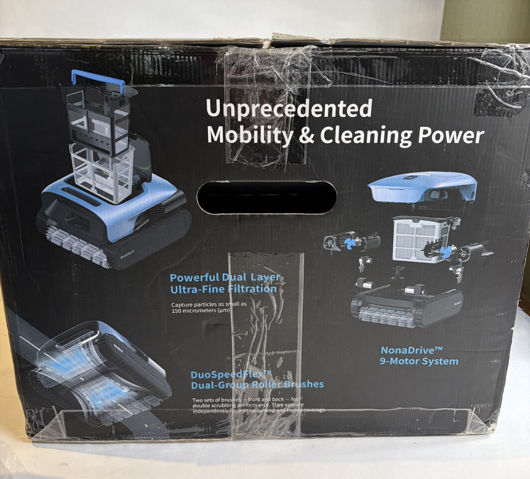 Beatbot A100 Pro Cordless 5-in-1 Smart pool Cleaning Robot w/out accessories This item is new in and open box with parts shown and w/out cables or other accessories as shown.