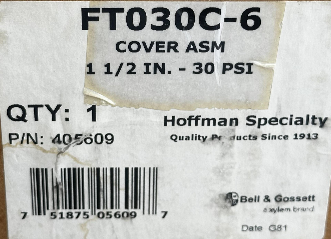 BELL & GOSSET STEAM TRAP COVER ASSEMBLY FT030C-6 405609 1 1/2" 30PSI This item is new in an opened box as shown.