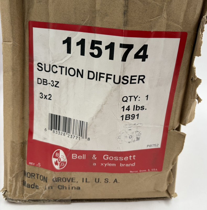 Bell & Gossett 115174 Suction Diffuser DB-3Z 3x2 New Color Red This item is new in an open, freight worn box as shown.