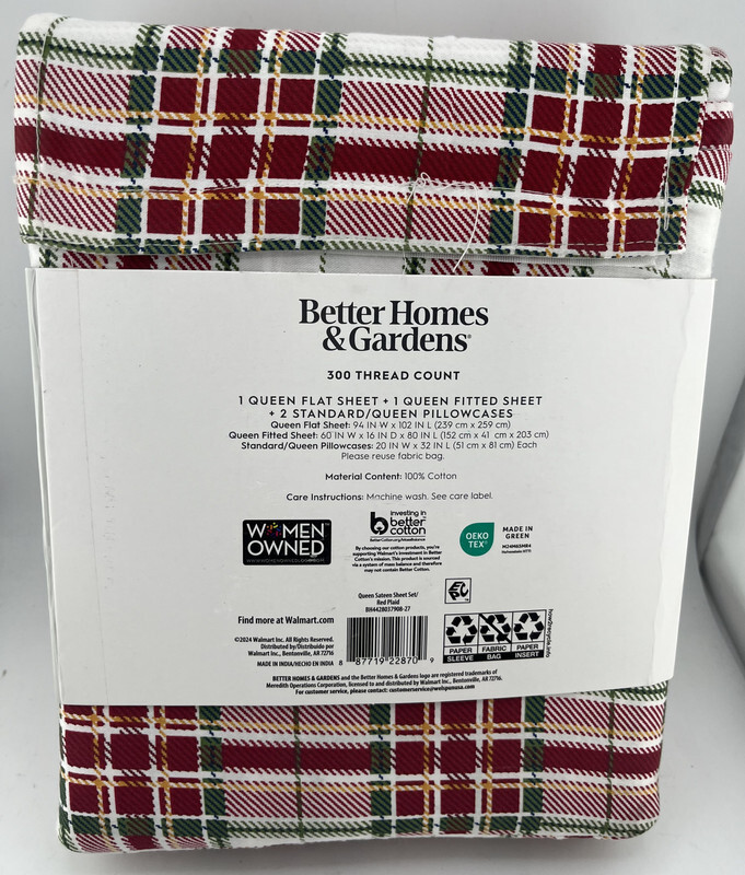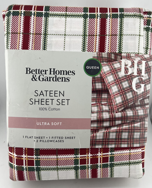 BetterHomes and Gardens Sateen Queen Sheet Set 300 Thread Count 100% Cotton Red Plaid This item is sealed as shown