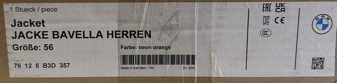 BMW MOTORRAD JACK BAVELLA HERREN NEON ORANGE AND BLACK MOTORCYCLE JACKET US 46 EU 56 This item is new with tags.