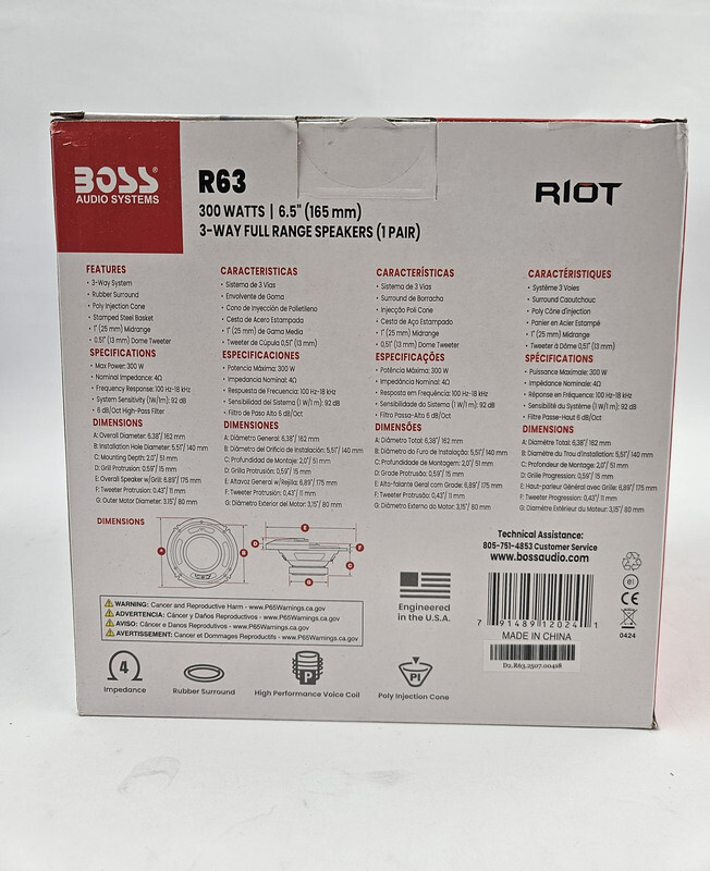 BOSS Audio R63 Riot 6.5" 600W 3 Way Car Audio Coaxial Speakers Stereo 4Ohm Black This item is new in a sealed box as shown.