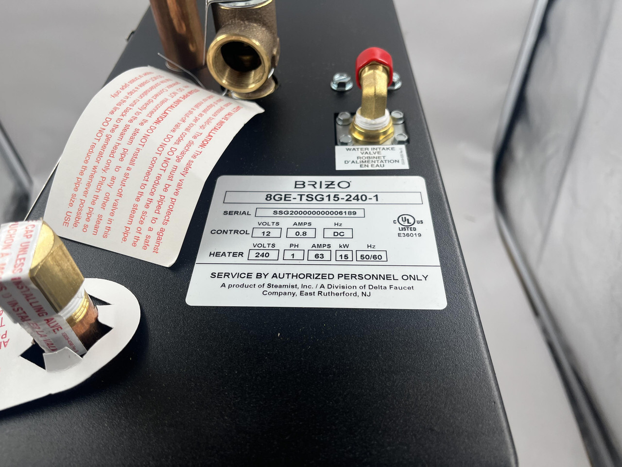 Brizo 8GE-TSG15-240-1 Mystix 15kW Steam Generator This item is new in original box as shown.