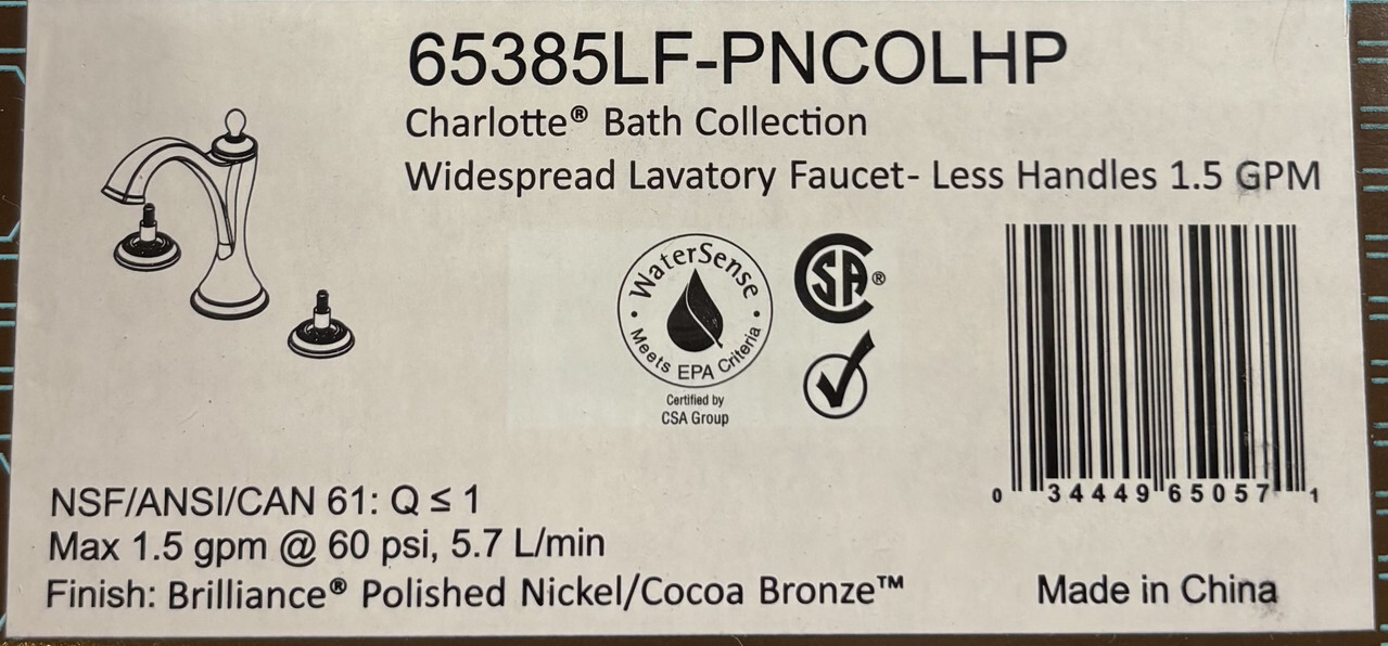 Brizo Charlotte 65385LF-PNCOLHP Wide Spread Lavatory Faucet-Less Handles 1.5 GPM This item is new as shown.
