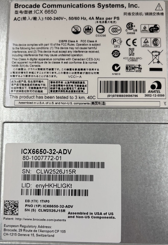Brocade Icx6650-32-adv Sfp+ 56 Ports 10g Active Switch This item is used as shown.
