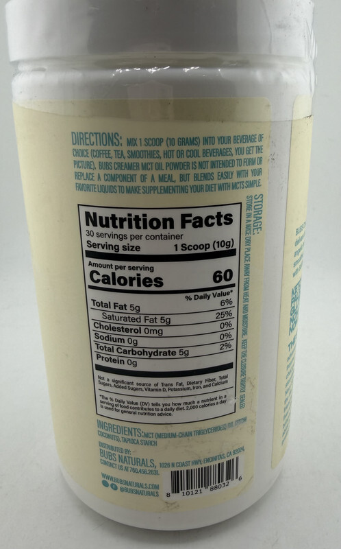 Bubs Naturals Bubs Creamer MCT Oil Powder Vegan Friendly Unflavored EXP:03/2027 This item is sealed as shown. Expiration is 03/2027