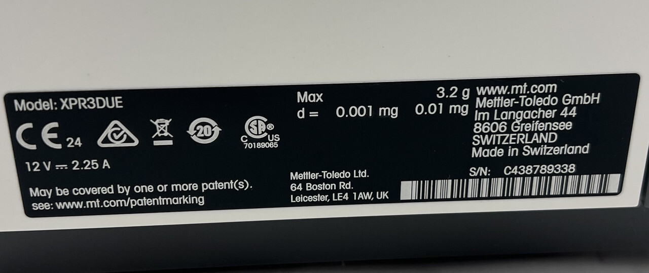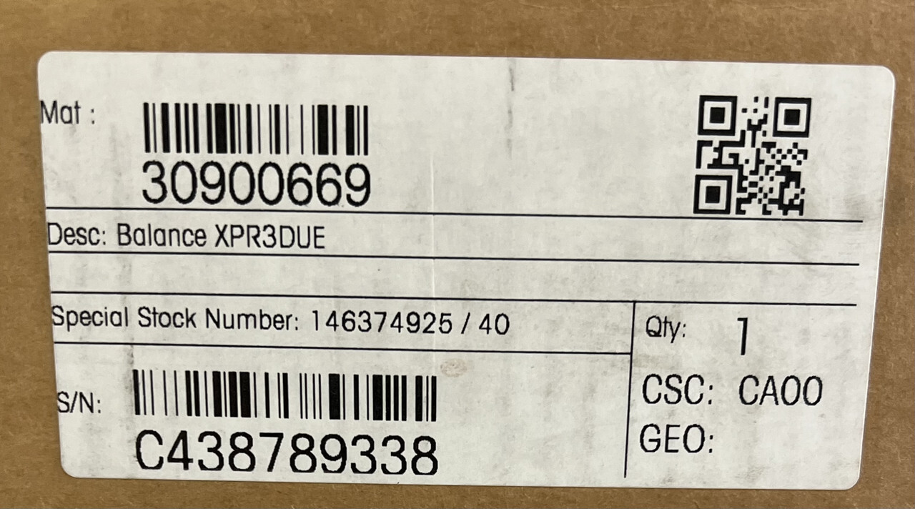 METTLER TOLEDO CALIBRATED BALANCE XPR3DUE MICROBALANCE WITH SMARTPAN This item comes brand new in original manufacturer packaging as shown.