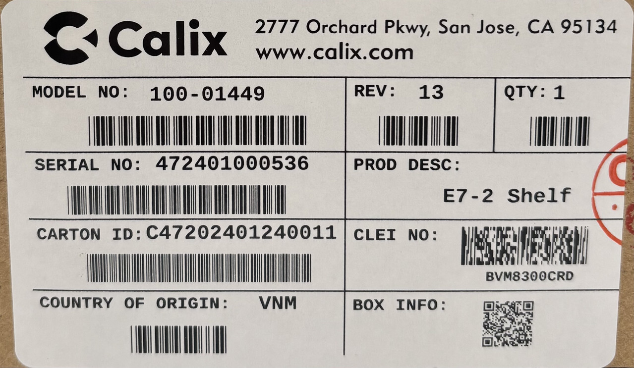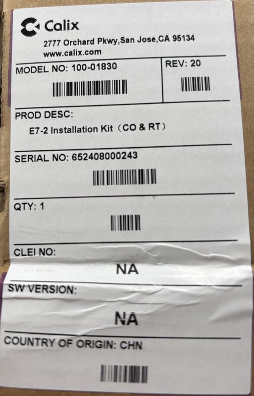 CALIX 000-00372 E7-2 CHASSIS/HARDWARE FIELD INSTALL KIT 100-01449 100-01830 This item is new as shown.