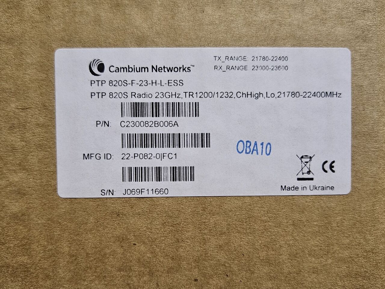 CAMBIUM NETWORKS PTP 820S-F-23-H-L-ESS C230082B006A 23GHZ 21780-22400MHZ This item is new as shown. Item guaranteed!