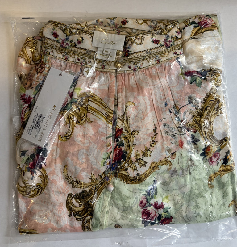 Camilla The Queens Quarters Raglan Button Up Shirt Size XXL RRP$650.00 BLOA107 This shirt is new with original tags as shown