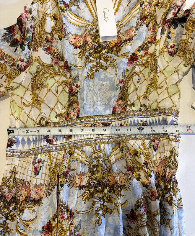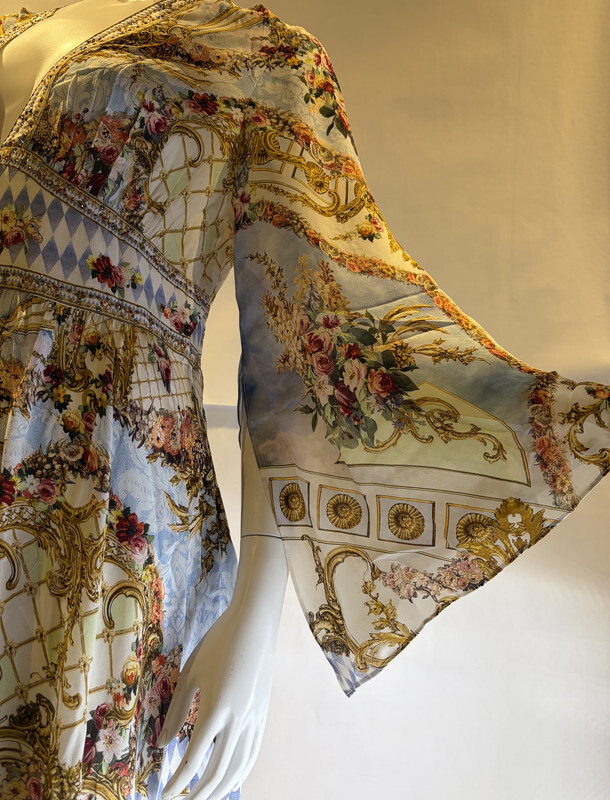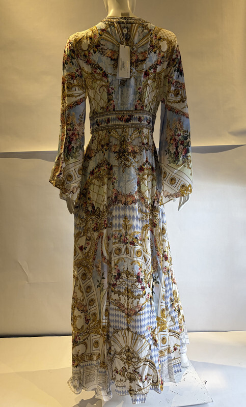Camilla Throne Games Kimono Sleeve Dress w/ Shirring Detail SZ Large LDSA065 This dress is new with original tags as shown. Mannequin is 5'7" and dress hits at ankle length.