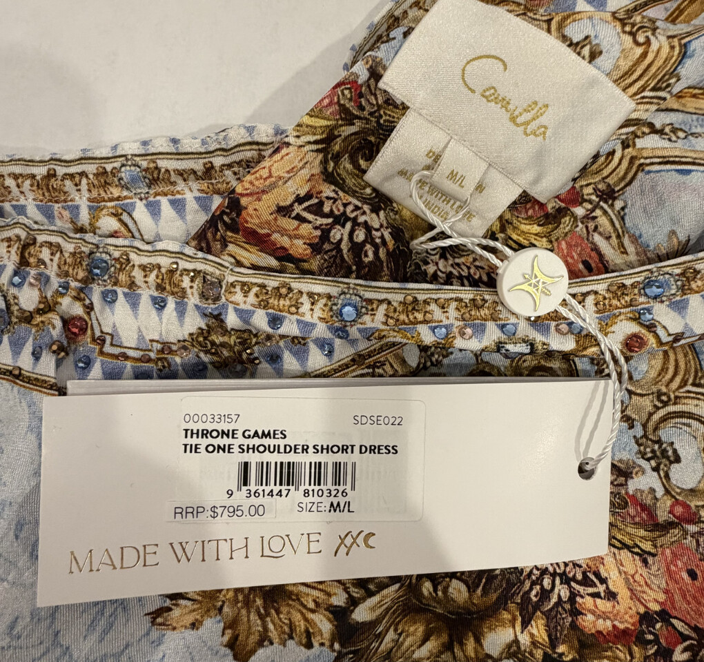 Camilla Throne Games Tie One Shoulder Short Dress SZ M/L RRP 759.00$ SDSE022 This dress is new with original tags as shown.