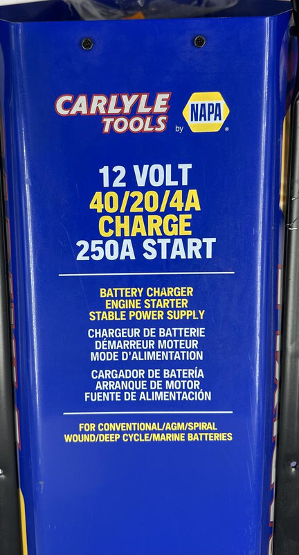 Carlyle Tools by Napa CWC12V40A 12 VOLT 40/20/4A CHARGE 250A START Battery Charger This item is in excellent condition in an opened box as shown.