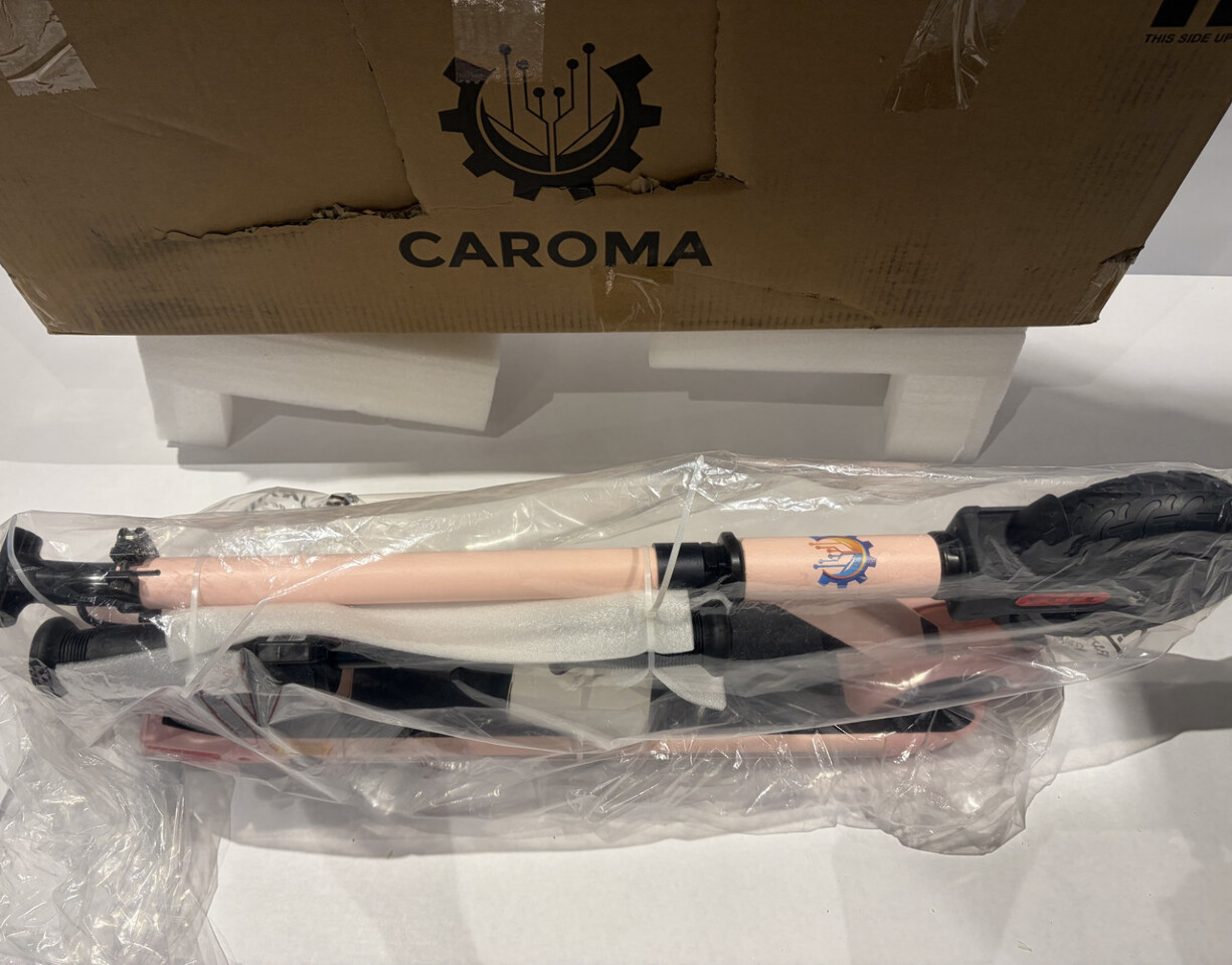 Caroma E35 Electric Scooter Ages 6-14 150W LED Lights 10MPH 132LBS max PINK This item is new (opened for pictures) in a slightly freight worn box as shown