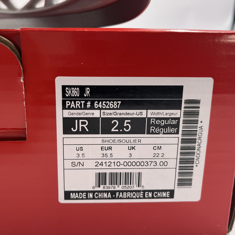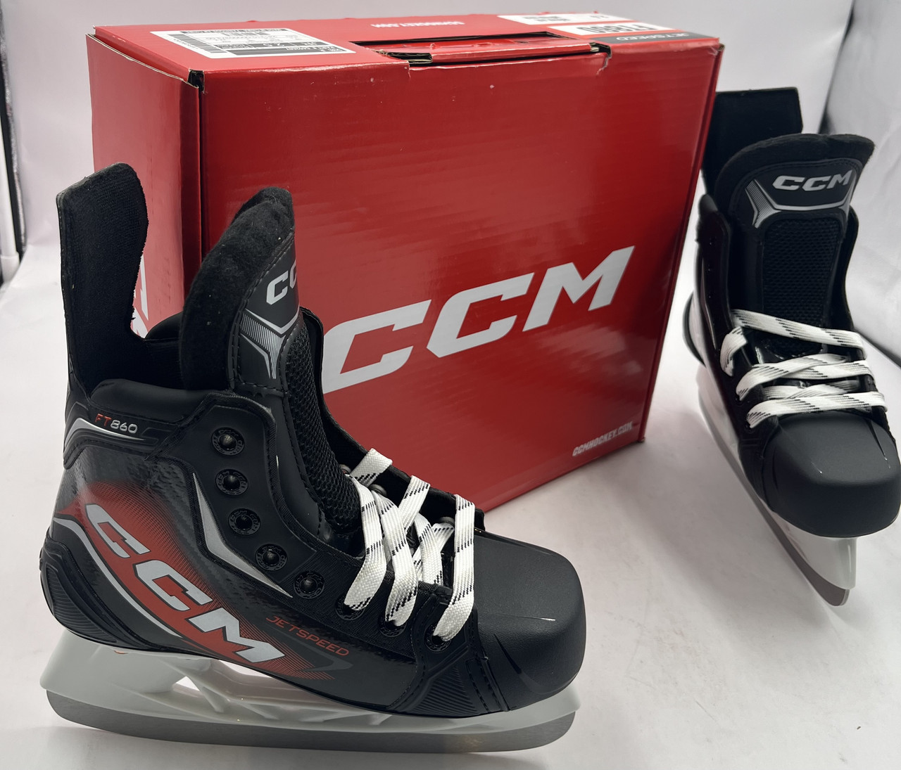 CCM FT860 6452685 JR SKATE SIZE 2.5 SHOE SIZE 3.5 REGULAR ICE HOCKEY SKATES These skates are brand new in original box as shown.