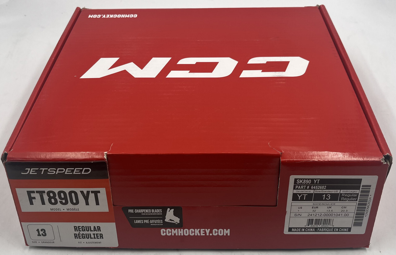 CCM JETSPEED FT890 YOUTH 6452682 SHOE SIZE 1 REGULAR ICE HOCKEY SKATES These skates are brand new in original box as shown.