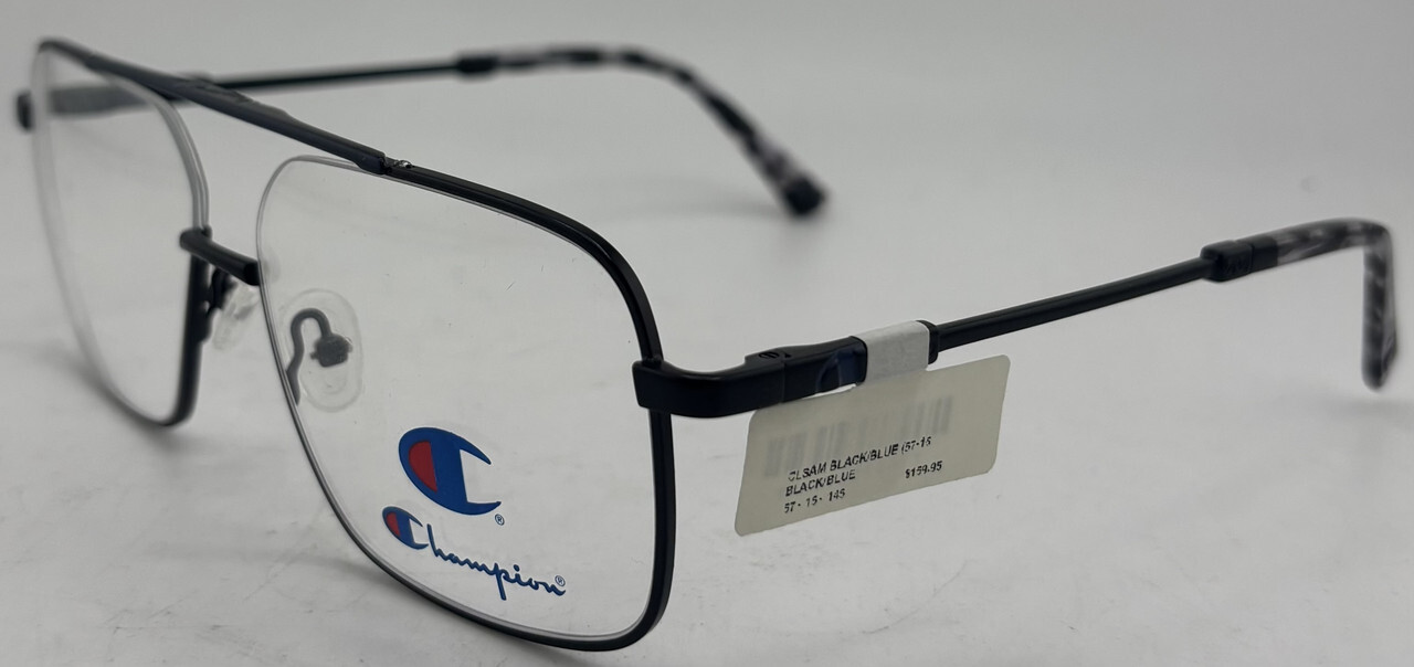Champion SAM C03 57-15-145 Black/Blue Eyeglass Frames This item is new with tags and comes without a case or accessories as shown.