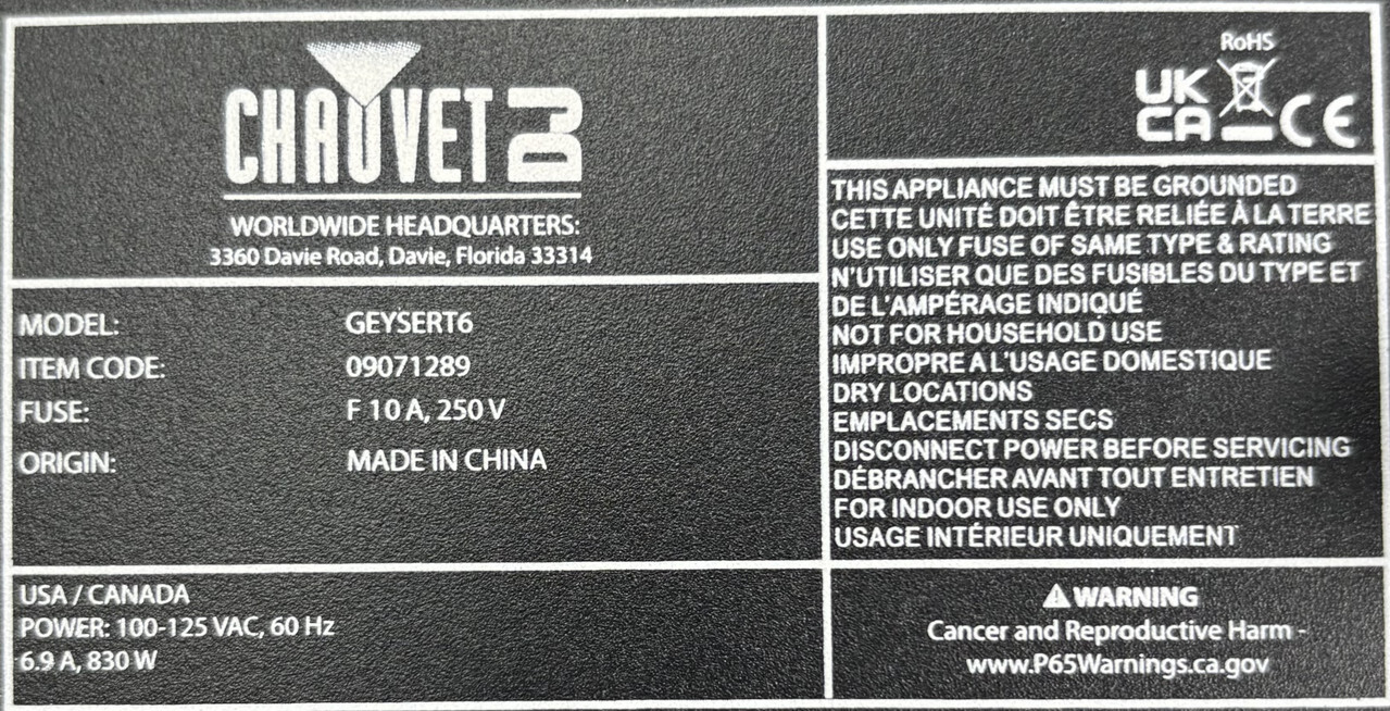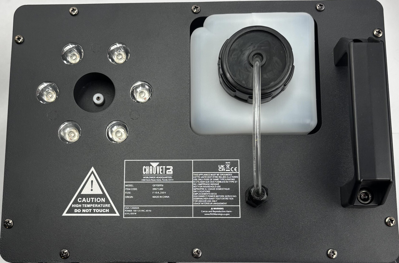 Chauvet DJ Geyser T6 Vertical LED RGB Light And Fog Machine With Remote This item is new in an open box as shown.