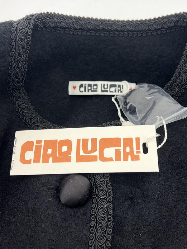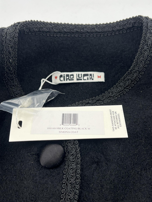 CIAO LUCIA Simona Coat 80016019BLK long sleeve button front black coat size M This item is new as shown.