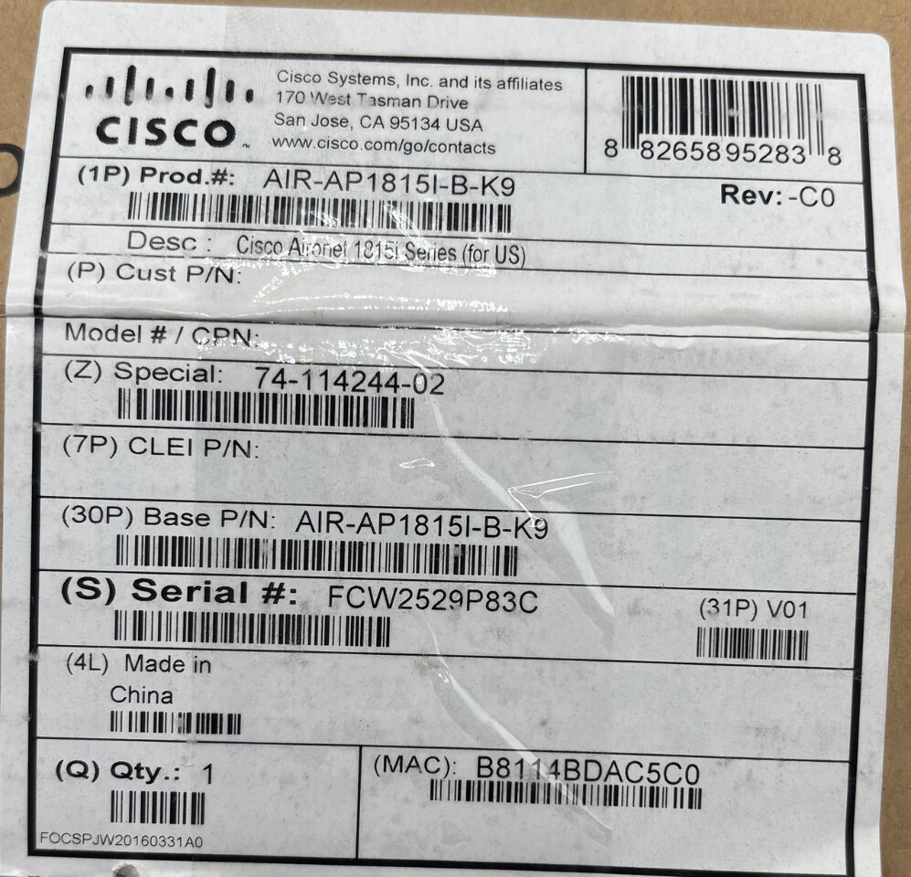 - Model: AIR-AP1815I-B-K9