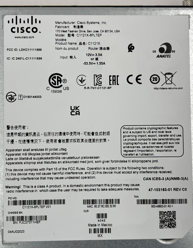 Cisco C1121X-8PLTEP ISR 1100 SERIES INTEGRATED SERVICE ROUTER This item is brand new and comes with accessories in an opened box as shown.