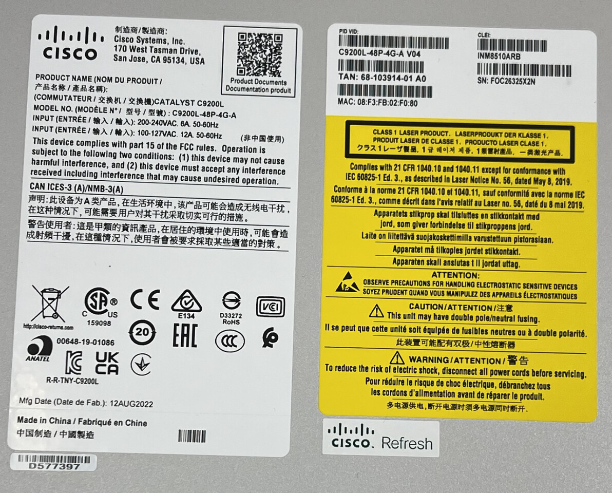 Cisco C9200L-48P-4G-A Catalyst 9200L 48-Port PoE+ 4x1G Network Advantage Switch This item is brand new and comes with accessories as shown.