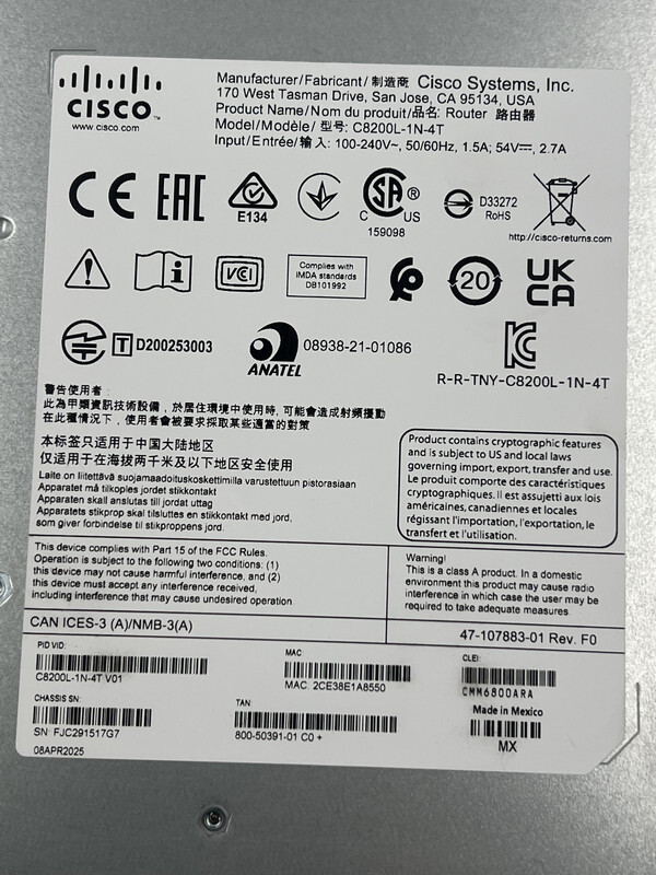 Cisco Catalyst 8200L-1N-4T rack-mountable router This item is new as shown.