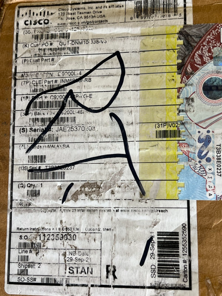 Cisco Catalyst 9200L C9200L-24P-4G-E 24 port rack-mountable Network switch This item is new in open box & comes as shown. It does indicate being smartnet eligible.
