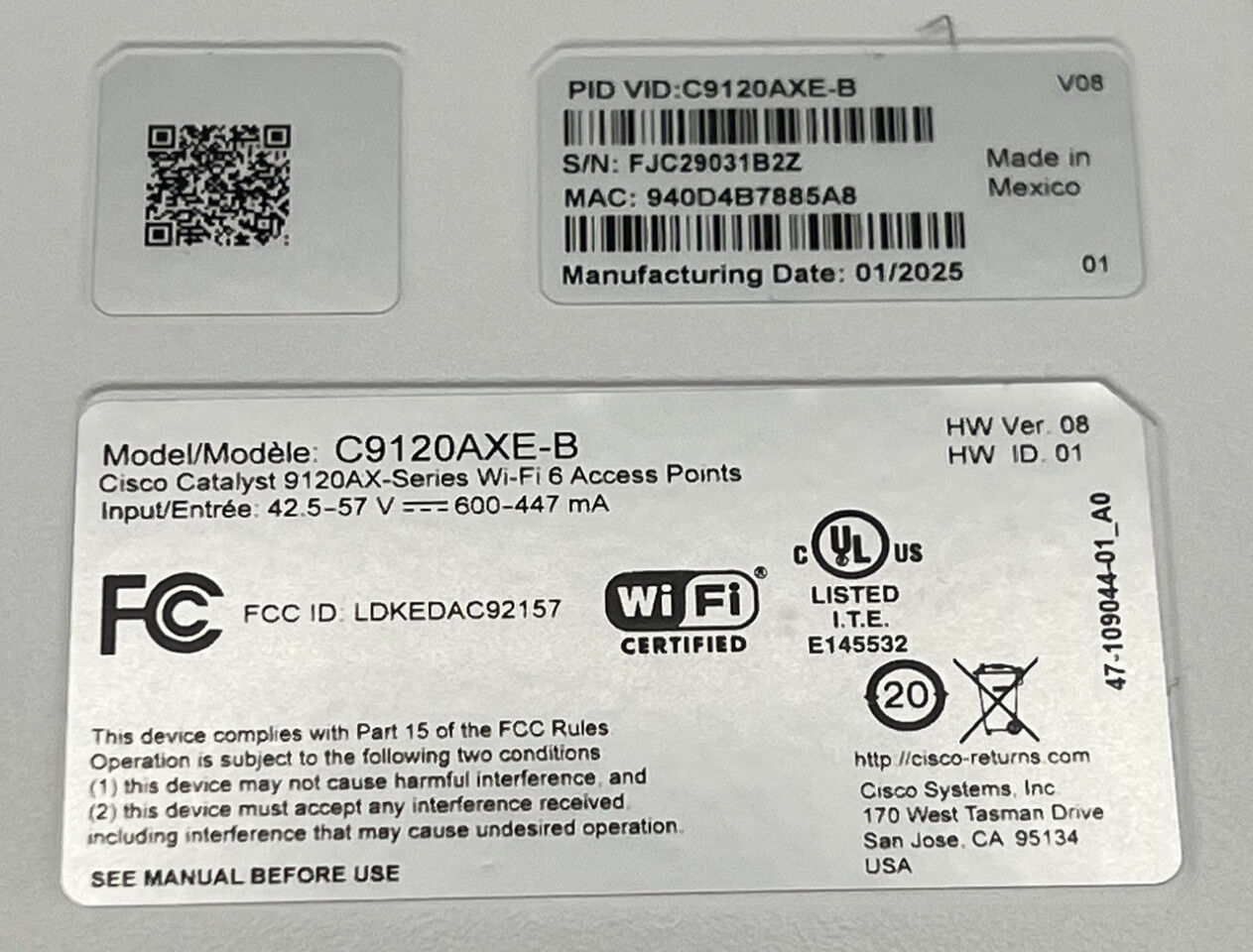 CISCO CATALYST C9120AXE-B WIRELESS ACCESS POINT 9120AXE SERIES B DOMAIN 802.11AX This item comes in a brand new sealed box other than one that was opened for pics.