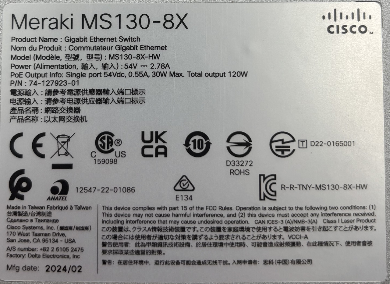 Cisco Ms130-8x-hw 74-127923-01 Meraki 8 Port Cloud Managed Network Poe Switch This item is new as shown & is unclaimed.