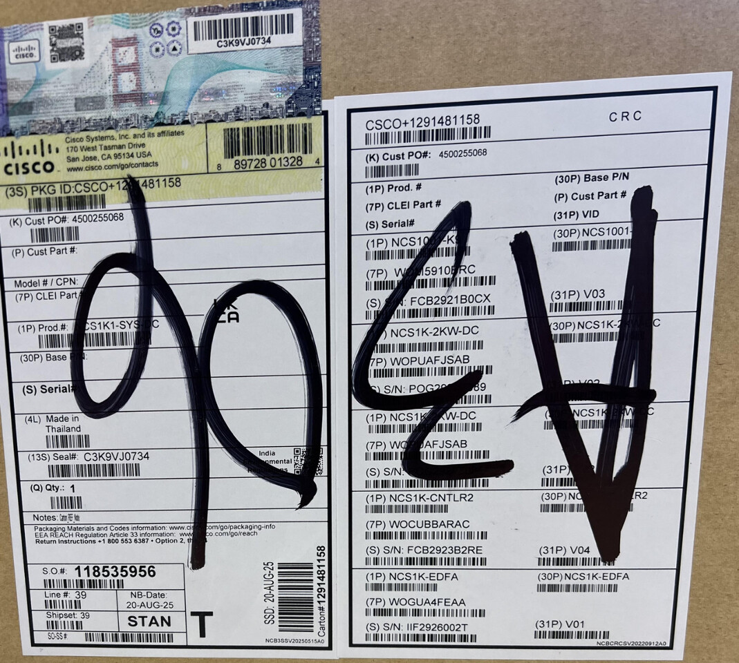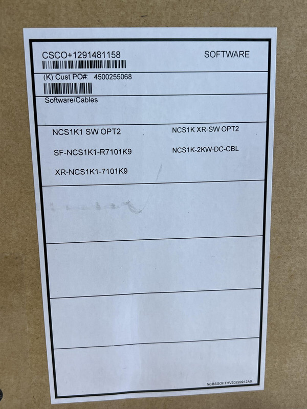 - Notes: This item comes brand new in sealed original packaging with the following parts: NCS1001-K9, 2xNCS1K-2KW-DC, NCS1K-CNTLR2, 2xNCS1K-EDFA, NCS1K-SSD, 4xNCS1K1-FAN, 2x15216-FLD-4-55.7, 2x15216-FLD-58.9 as shown.