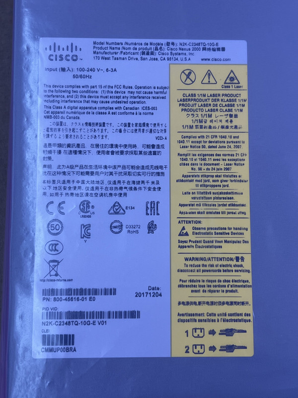 Cisco nexus 2000 N2K-C2348TQ-10G-E 48 port extender switch w/damaged qsfp ports This item is internally sealed but comes with some damage to some QSFP ports as shown.
